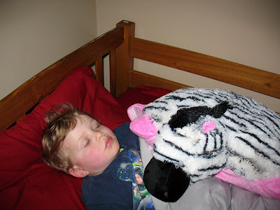 And there was the sleepover. On Ben's birthday eve, he requested a sleep over at Gramma Susan and Grampa Dewey's house that they were happy to provide for him. He also requested breakfast in bed, but changed his mind when the time came. My parent's got him a pillow pet for his birthday that he's been wanting since Anna got hers a year and a half ago. The Zebra one, as you can see. They had it waiting on his bed for him when he came over for the sleepover, and he was so surprised and excited. Cute. I thought it was kind of a big deal that he slept over there alone. He's had plenty of sleep overs before, for fun and for babysitting (always with family), but never alone. It's always been with his big sister Anna. I think he relished the alone, undivided attention. And he deserves it . . . he is the middle child after all. :)